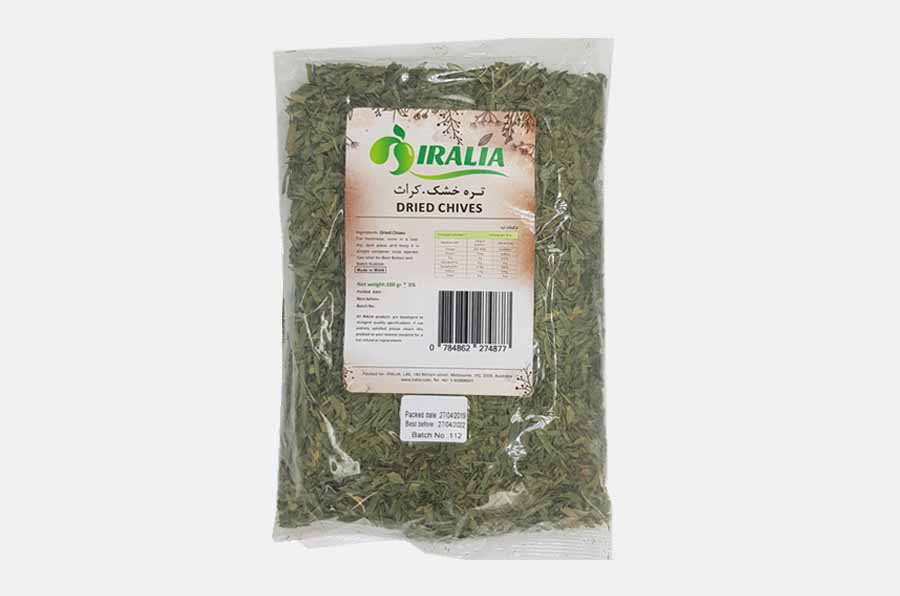 Dried Chives Sun dried, no preservatives, no added colour and flavor. Net weight: 100g Unit per package: 30 Shelf life : 2 years Bulk package: 5 kg, 10 kg Custom made packaging: Available Back